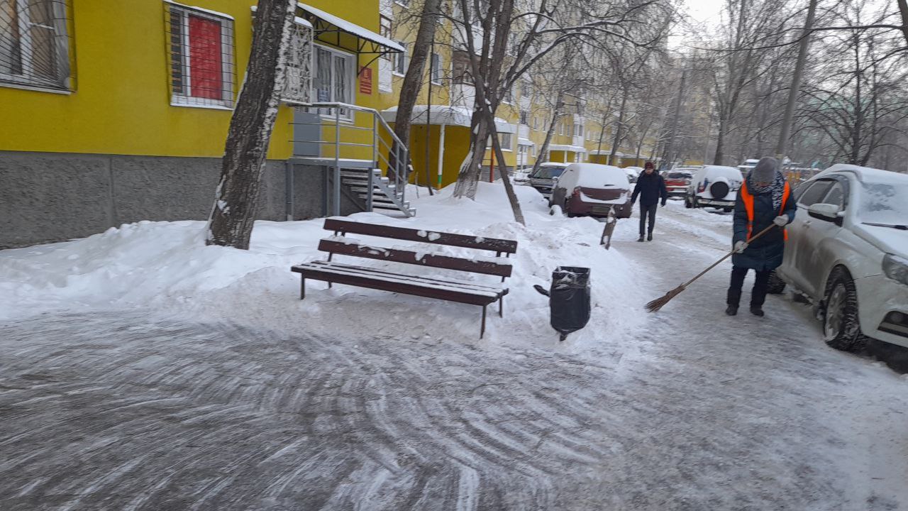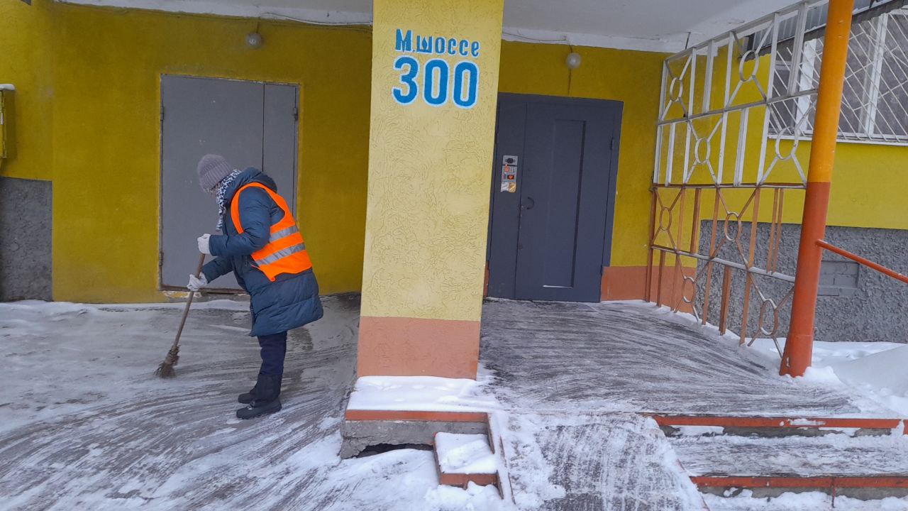 В холодный период года: очистку крышек люков колодцев от снега и льда; сдвигание свежевыпавшего снега и очистка придомовой территории от снега и льда; подметание территории , свободной от снежного покрова; очистка от мусора урн, установленных возле зданий и их промывка; уборка крыльца и площадки перед входом в здание.